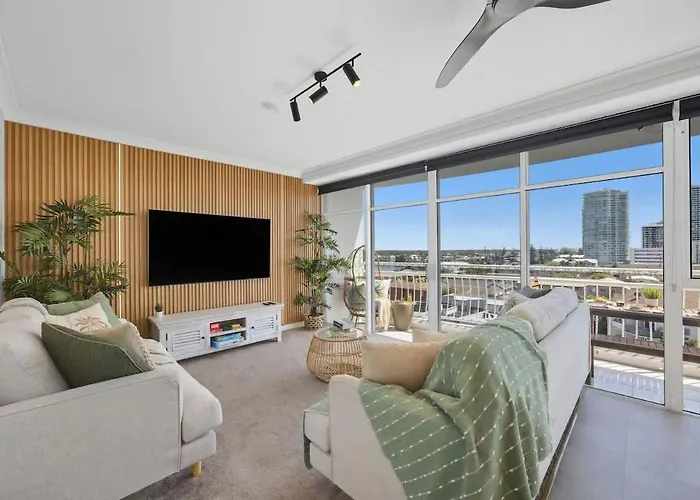 La résidence spacieuse se trouve dans la localité de "Biggera Waters". Les lieux à visiter incluent l'Université Griffith University, à 10 minutes en voiture de l'appartement. Cet appartement 2Br Beachfront Pool Spa Sauna est niché à une courte distance du Parc Harley Park.